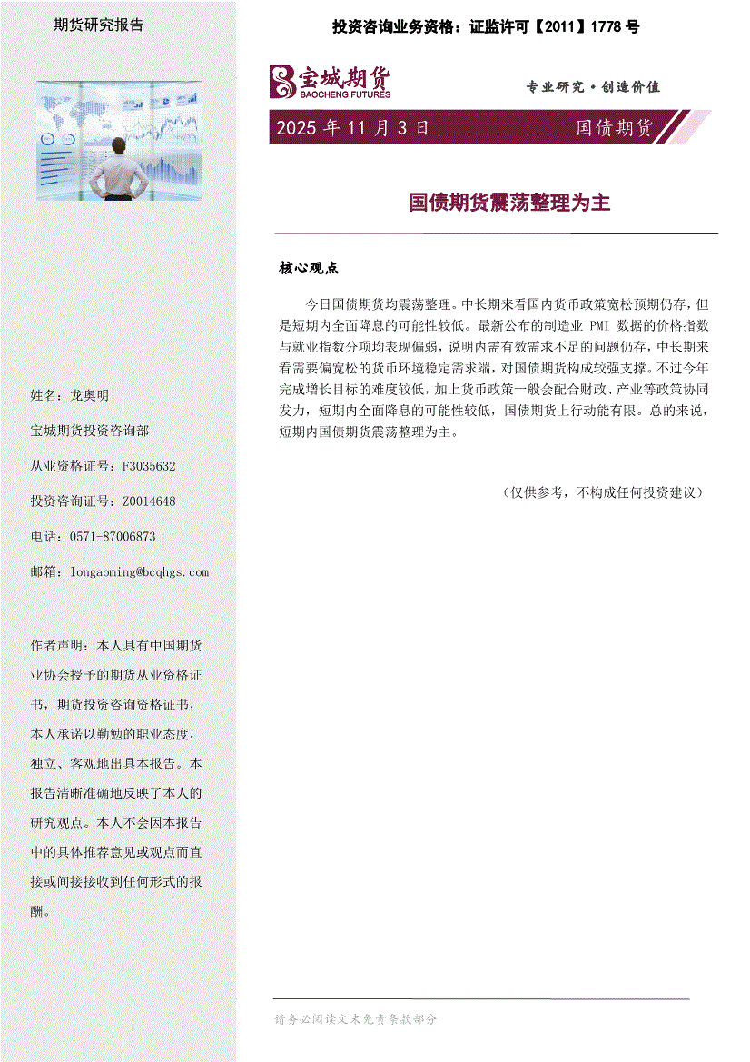 宝城期货-国债期货周报:短期内国债期货维持区间震荡-251103