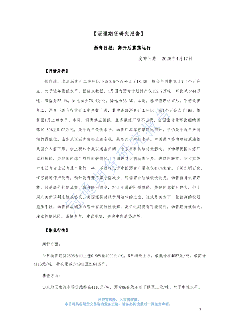 冠通期货-PP日报:PP低开后震荡运行-260414