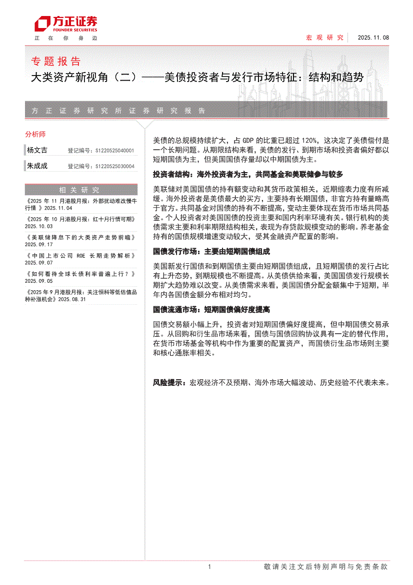 方正证券-大类资产新视角(二)——美债投资者与发行市场特征:结构和趋势-251108
