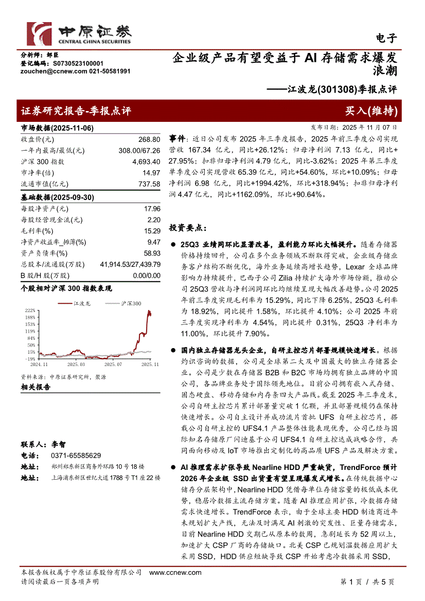 江波龙:中原证券-江波龙-301308-季报点评:企业级产品有望受益于AI存储需求爆发浪潮-251107