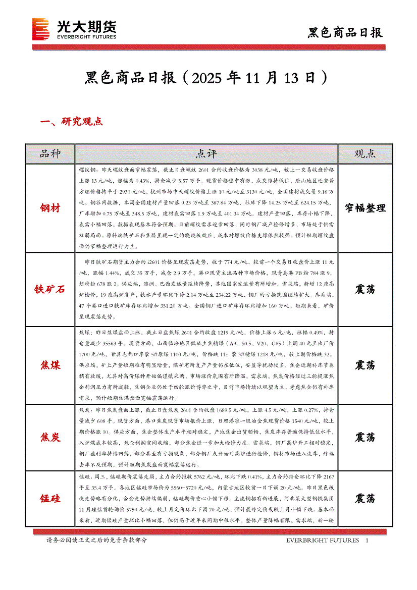 光大期货-光期黑色:铁矿石基差及价差监测日报-251112