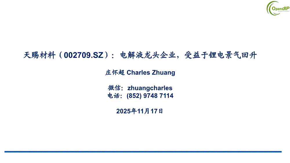 天赐材料:环球富盛-天赐材料-002709-电解液龙头企业,受益于锂电景气回升-251117