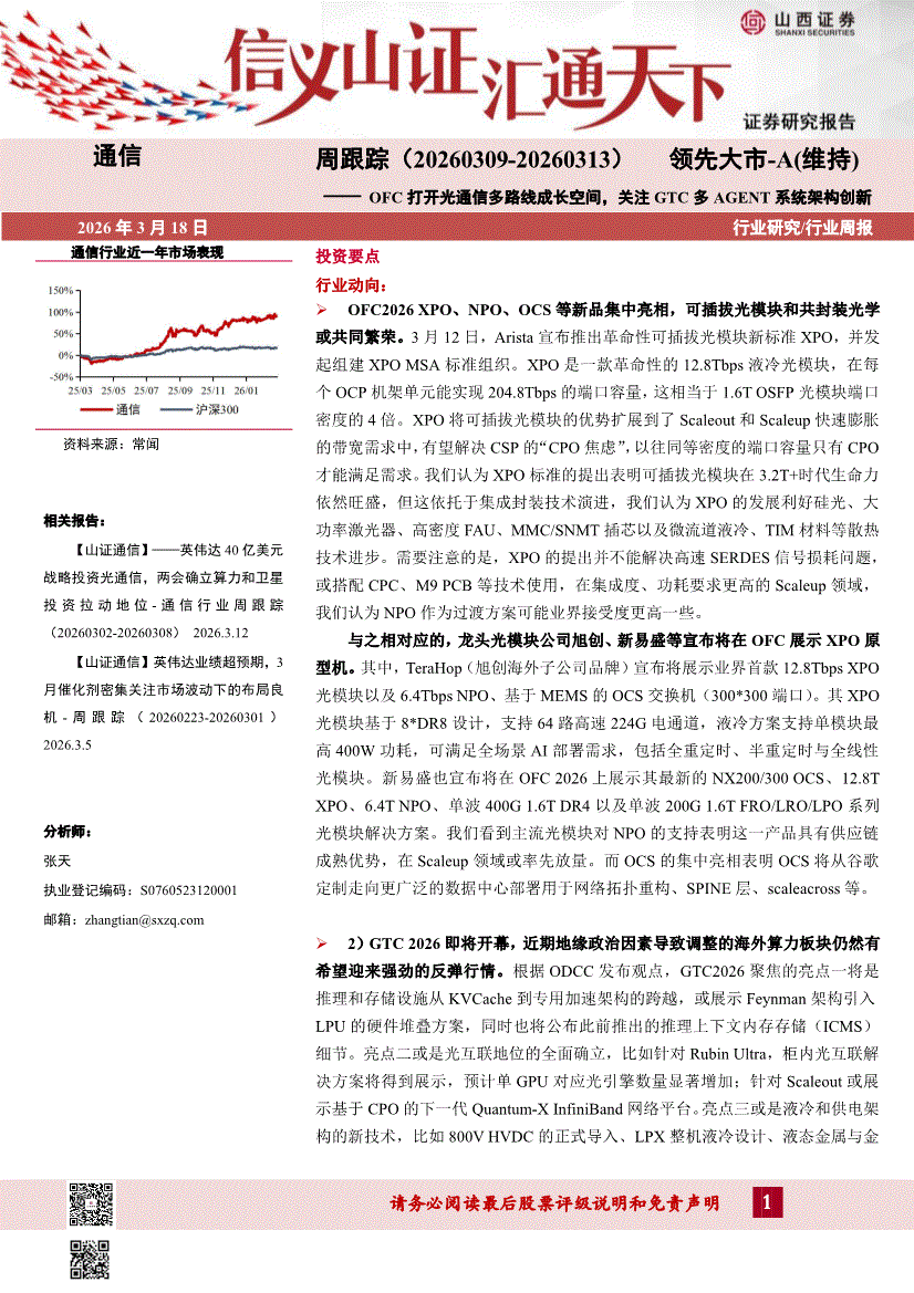 通信行业:山西证券-通信行业周跟踪:OFC打开光通信多路线成长空间,关注GTC多AGENT系统架构创新-260318