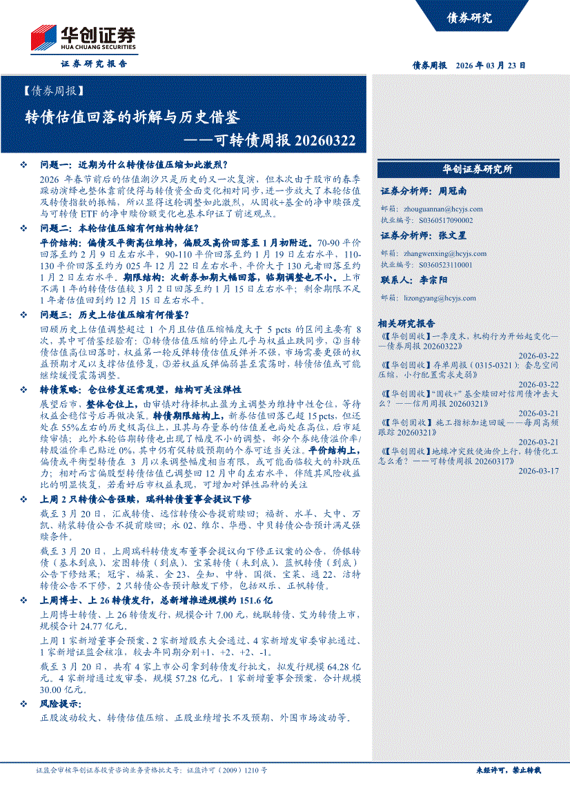 华创证券-【债券周报】可转债周报:转债估值回落的拆解与历史借鉴-260323