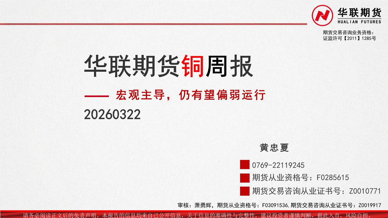 华联期货-铜周报:宏观主导,仍有望偏弱运行-260322