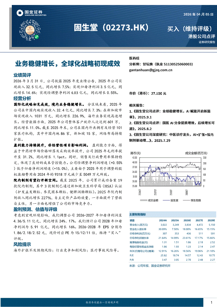 固生堂:国金证券-固生堂-2273.HK-业务稳健增长,全球化战略初现成效-260405