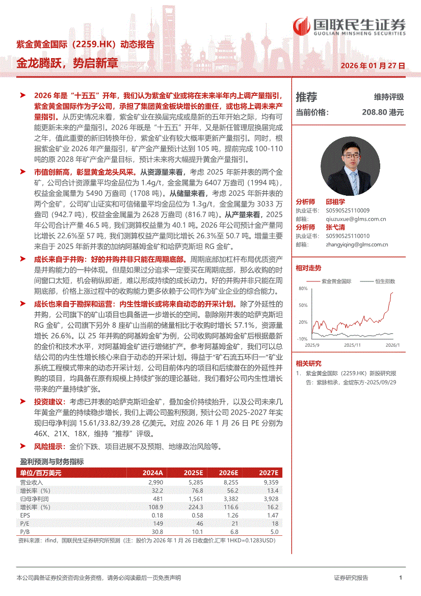 紫金黄金国际:国联民生证券-紫金黄金国际-2259.HK-动态报告:金龙腾跃,势启新章-260127