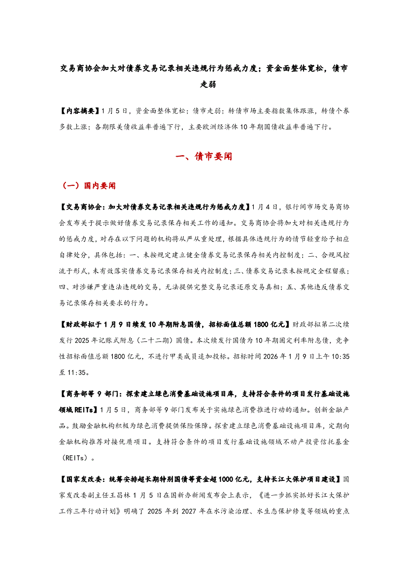 东方金诚-交易商协会加大对债券交易记录相关违规行为惩戒力度;资金面整体宽松,债市走弱-260108
