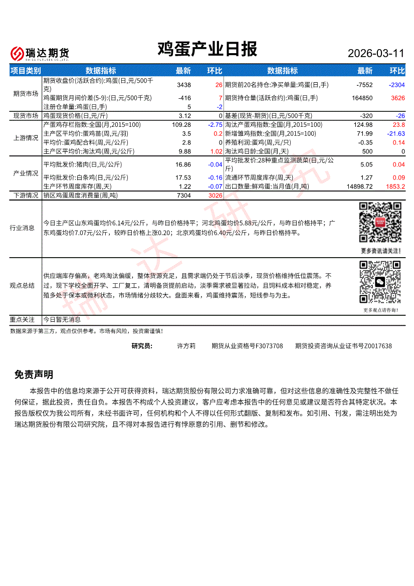 瑞达期货-鸡蛋产业日报-260311