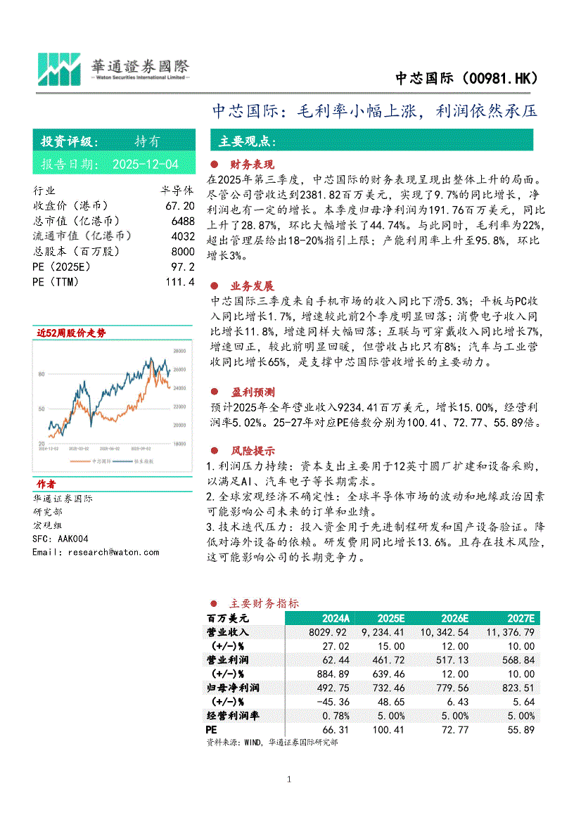 中芯国际:华通证券国际-中芯国际-0981.HK-毛利率小幅上涨,利润依然承压-251204