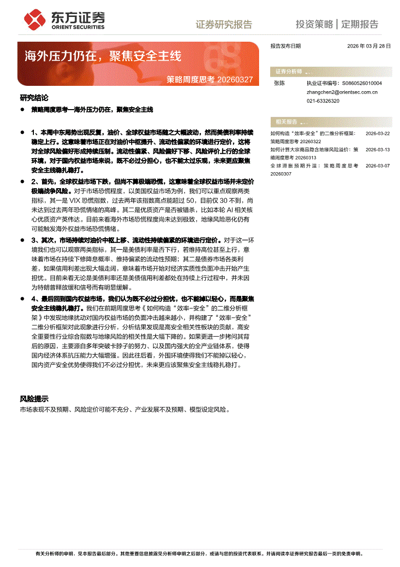 东方证券-策略周度思考:海外压力仍在,聚焦安全主线-260328