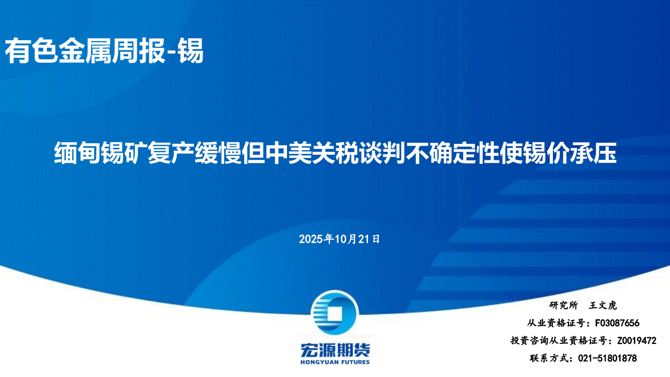 宏源期货-有色金属周报~锡:缅甸锡矿复产缓慢但中美关税谈判不确定性使锡价承压-251021