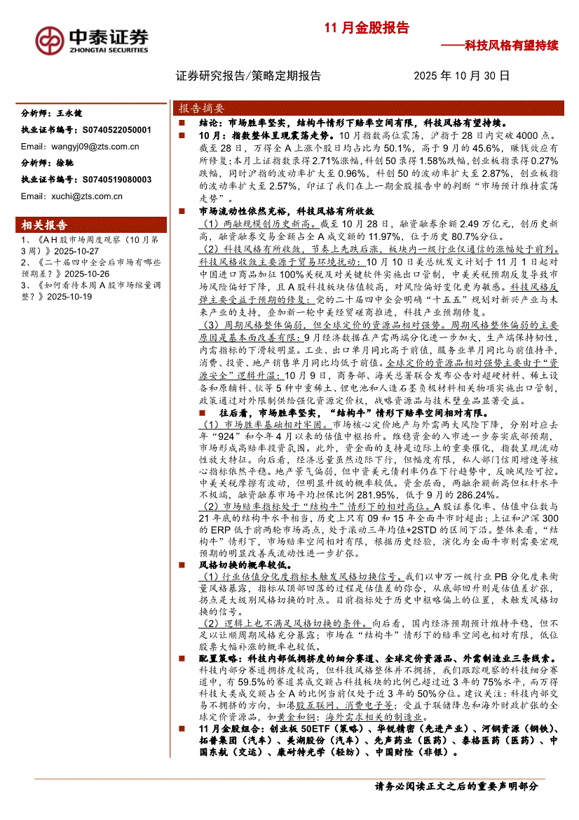 中泰证券-11月金股报告:科技风格有望持续-251030