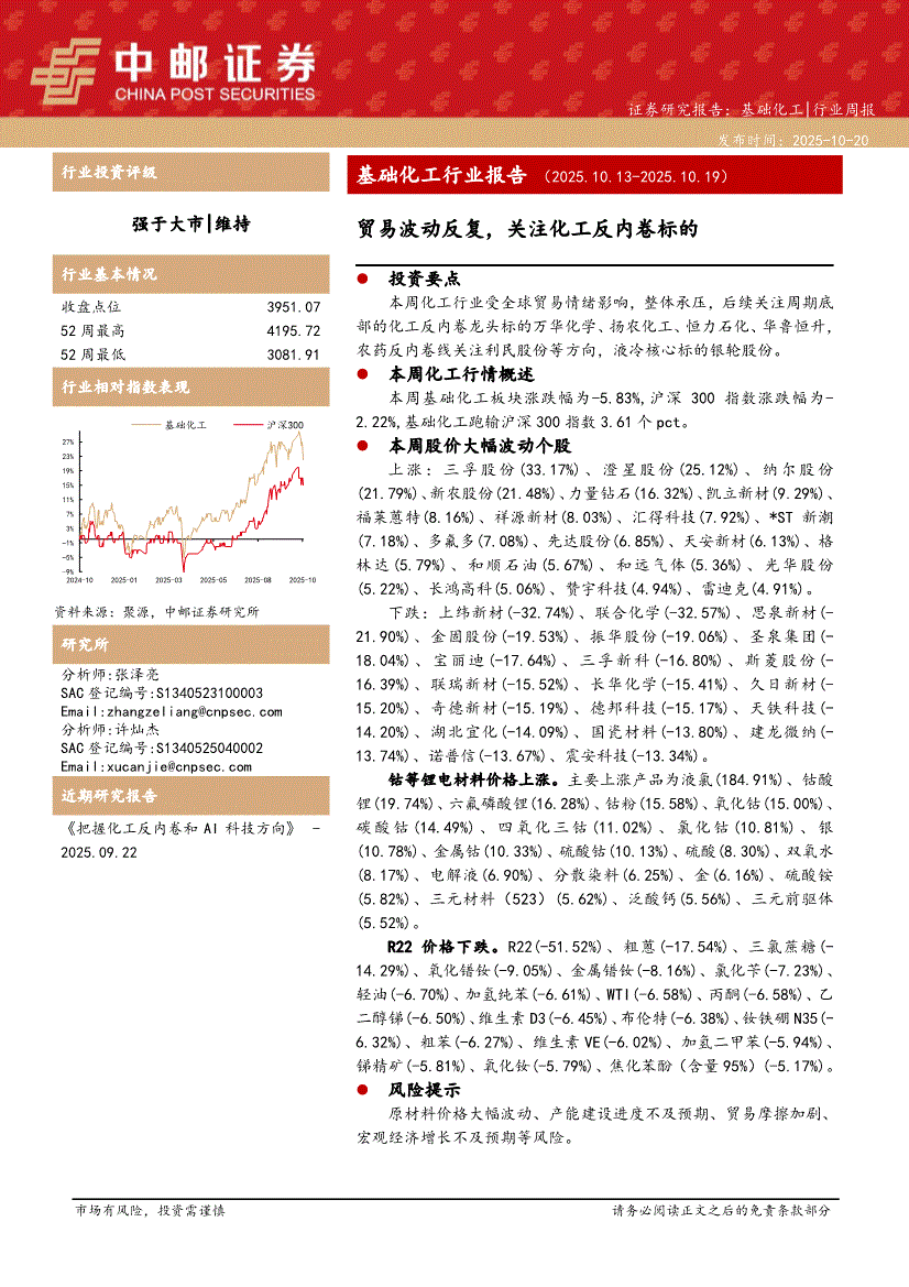基础化工行业:中邮证券-基础化工行业周报:贸易波动反复,关注化工反内卷标的-251020