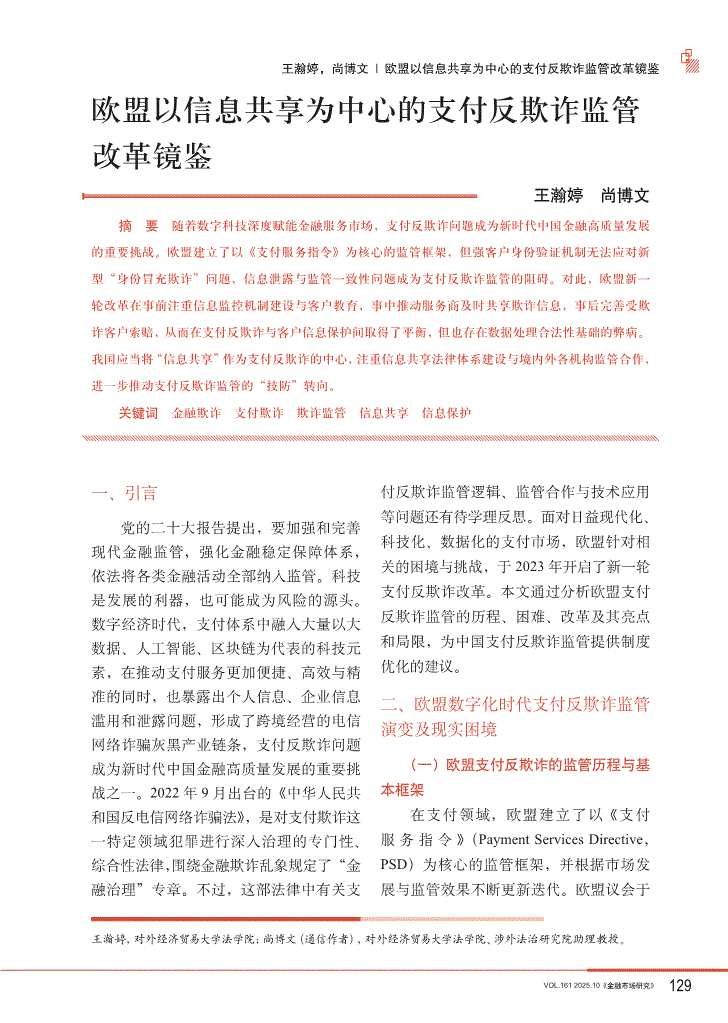金融市场研究-欧盟以信息共享为中心的支付反欺诈监管改革镜鉴-251028
