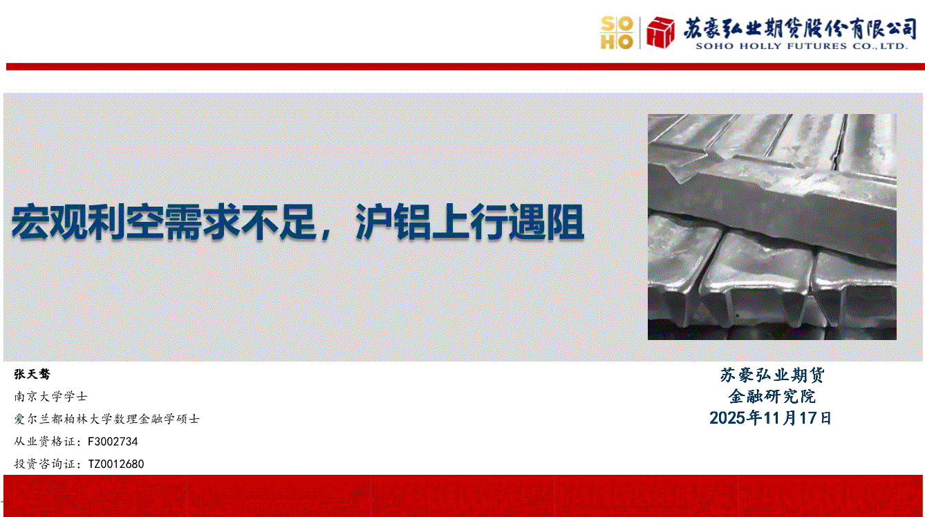 弘业期货-宏观利空需求不足,沪铝上行遇阻-251117