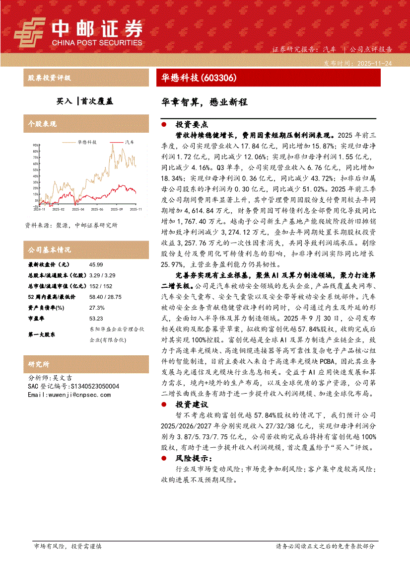 华懋科技:中邮证券-华懋科技-603306-华章智算,懋业新程-251124