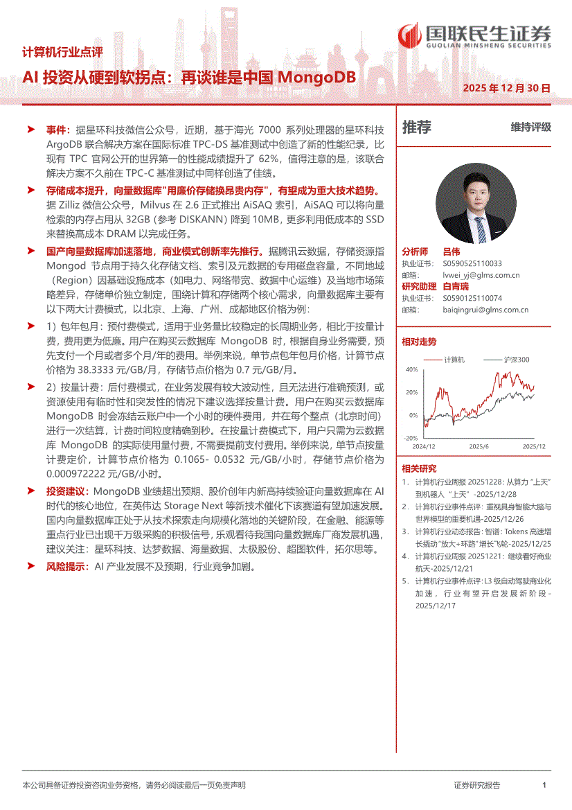 计算机行业:国联民生证券-计算机行业点评:AI投资从硬到软拐点,再谈谁是中国MongoDB-251230