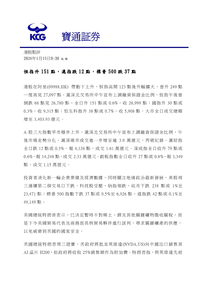 宝通证券-港股点评-260115