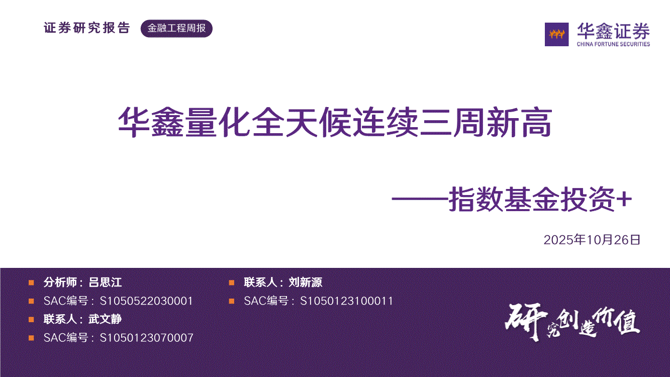华鑫证券-指数基金投资+:华鑫量化全天候连续三周新高-251026