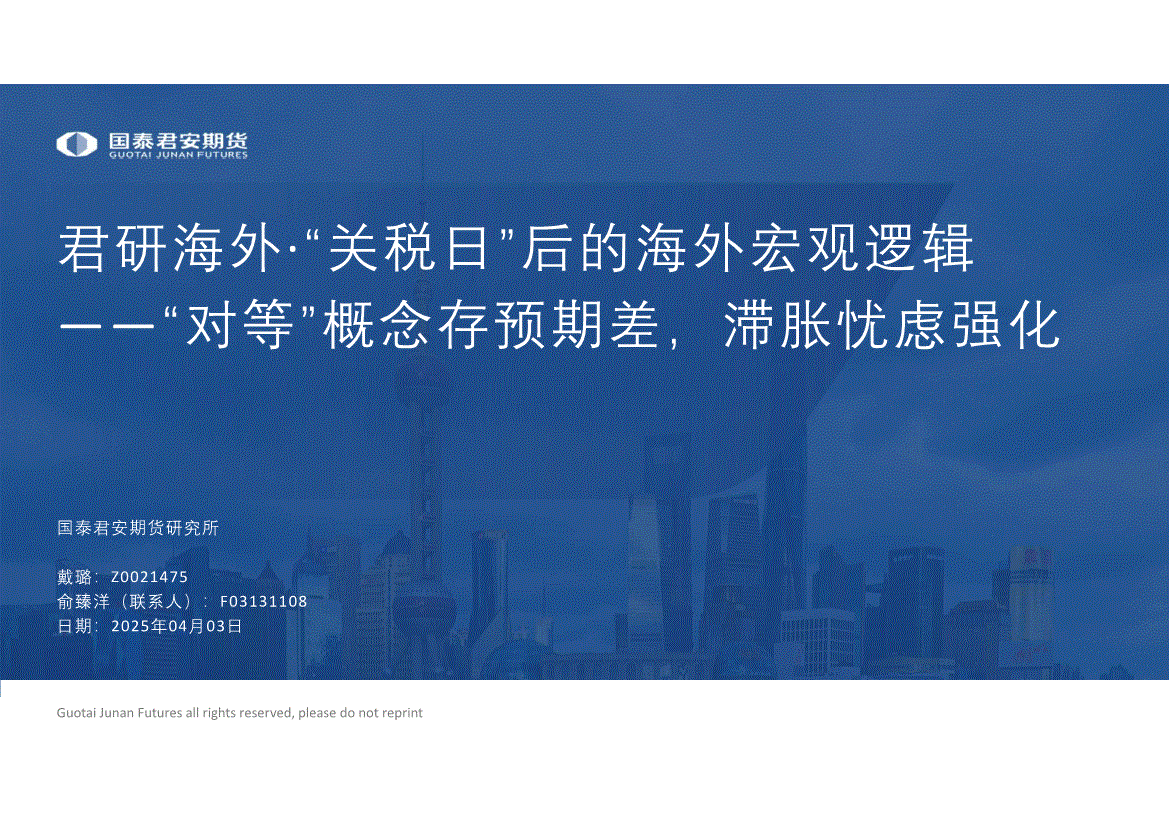国泰君安期货-君研海外·“关税日”后的海外宏观逻辑:“对等”概念存预期差,滞胀忧虑强化-250403
