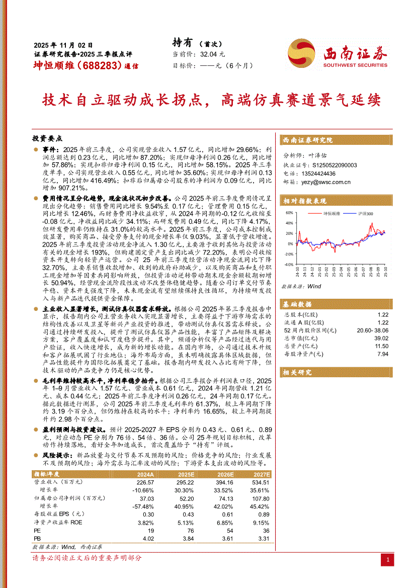 坤恒顺维:西南证券-坤恒顺维-688283-技术自立驱动成长拐点,高端仿真赛道景气延续-251102