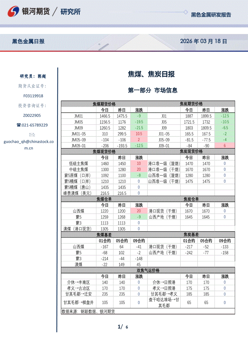银河期货-焦煤、焦炭日报-260318