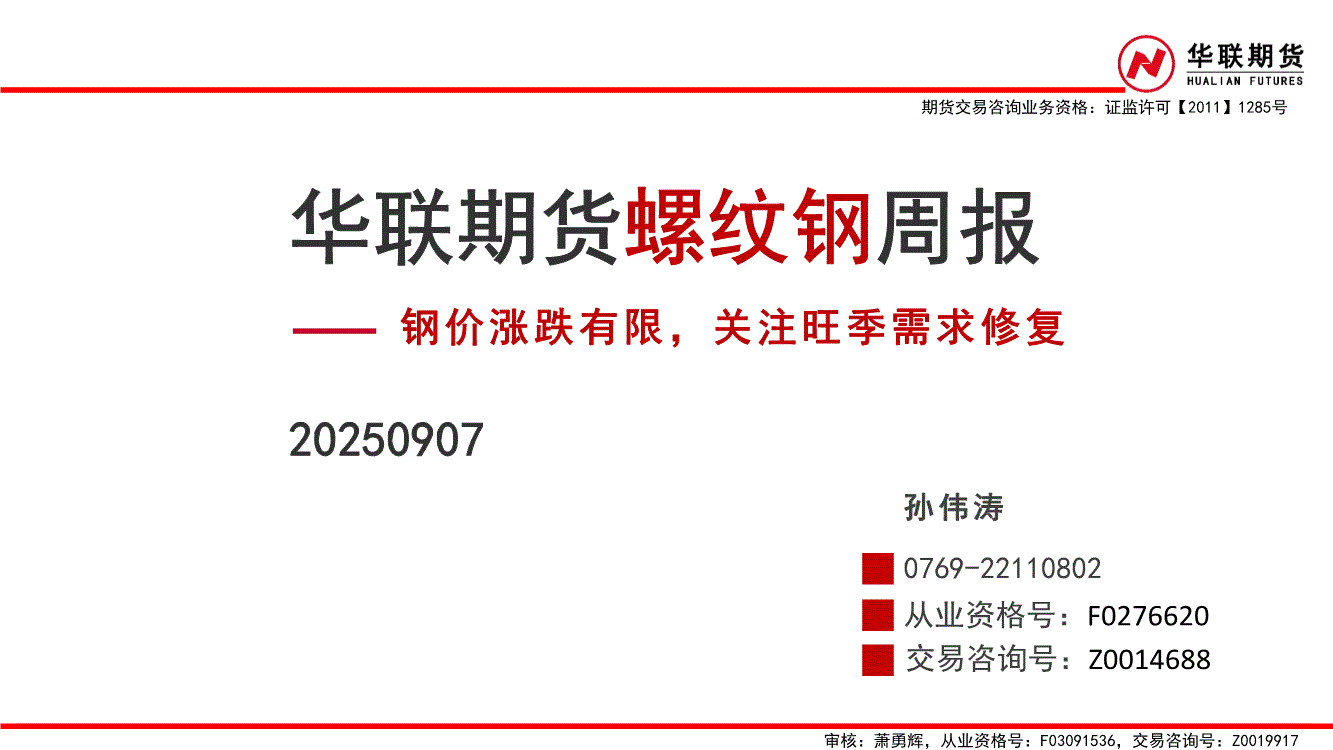 华联期货-螺纹钢周报:钢价涨跌有限,关注旺季需求修复-250907