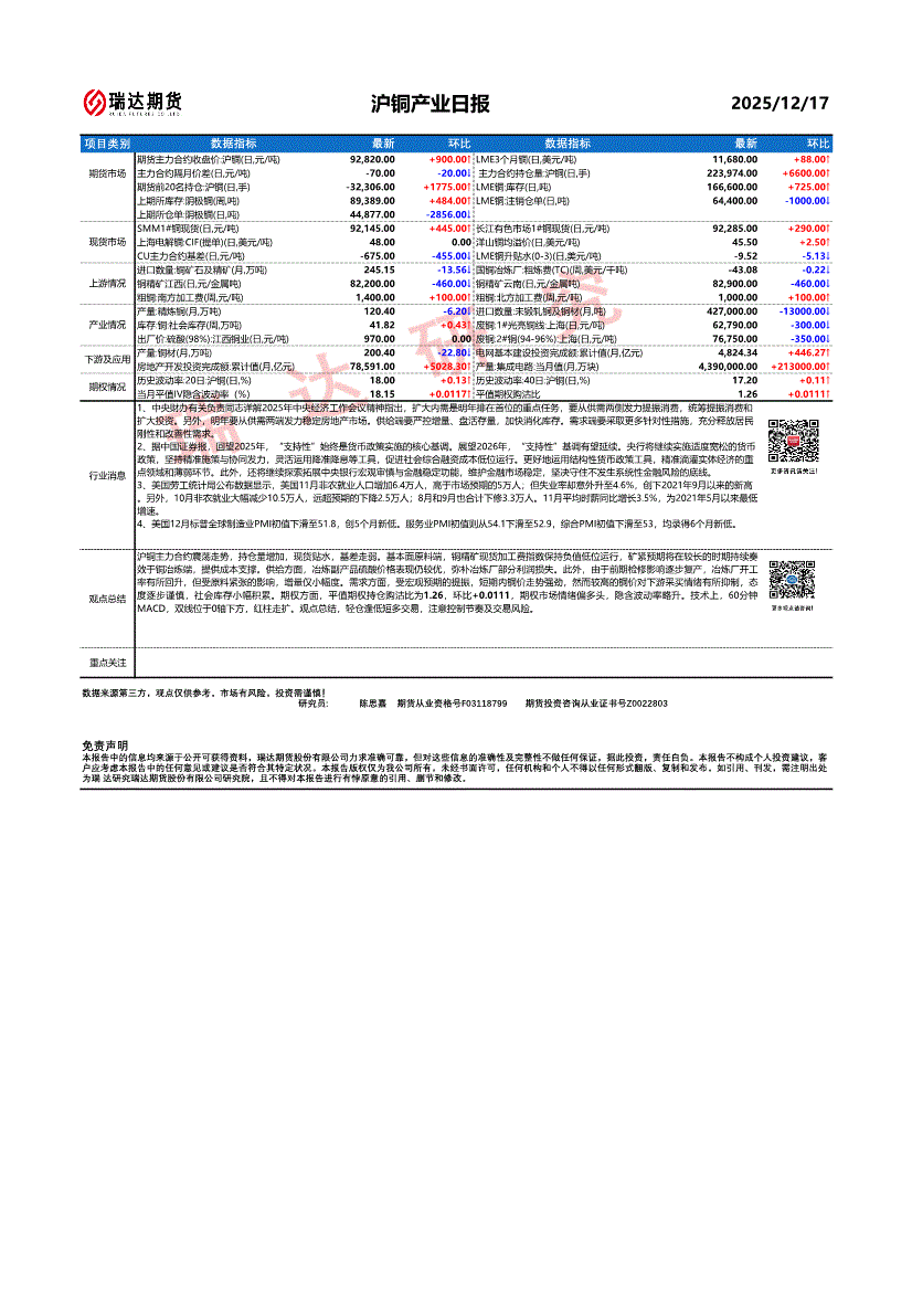 瑞达期货-沪铜市场周报:供给小增需求谨慎,沪铜或将震荡运行-251212