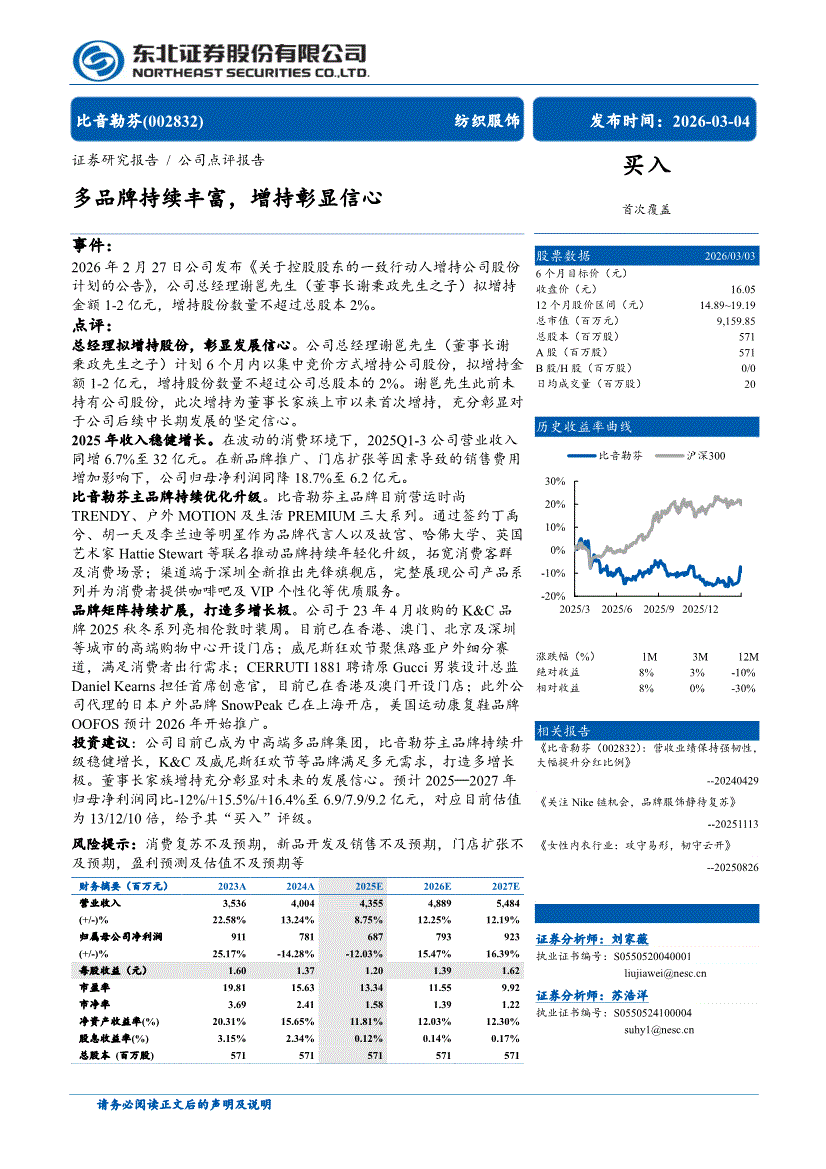 比音勒芬:东北证券-比音勒芬-002832-多品牌持续丰富,增持彰显信心-260304