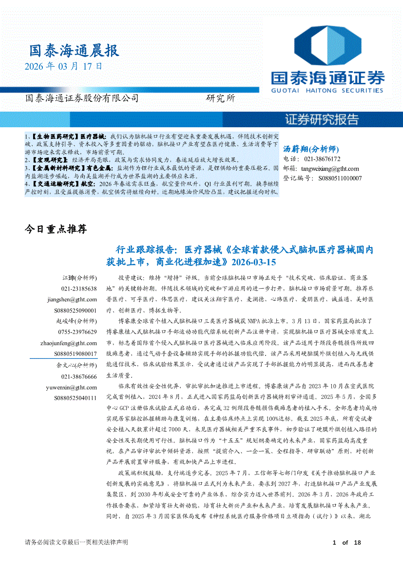 国泰海通证券-晨报-260317