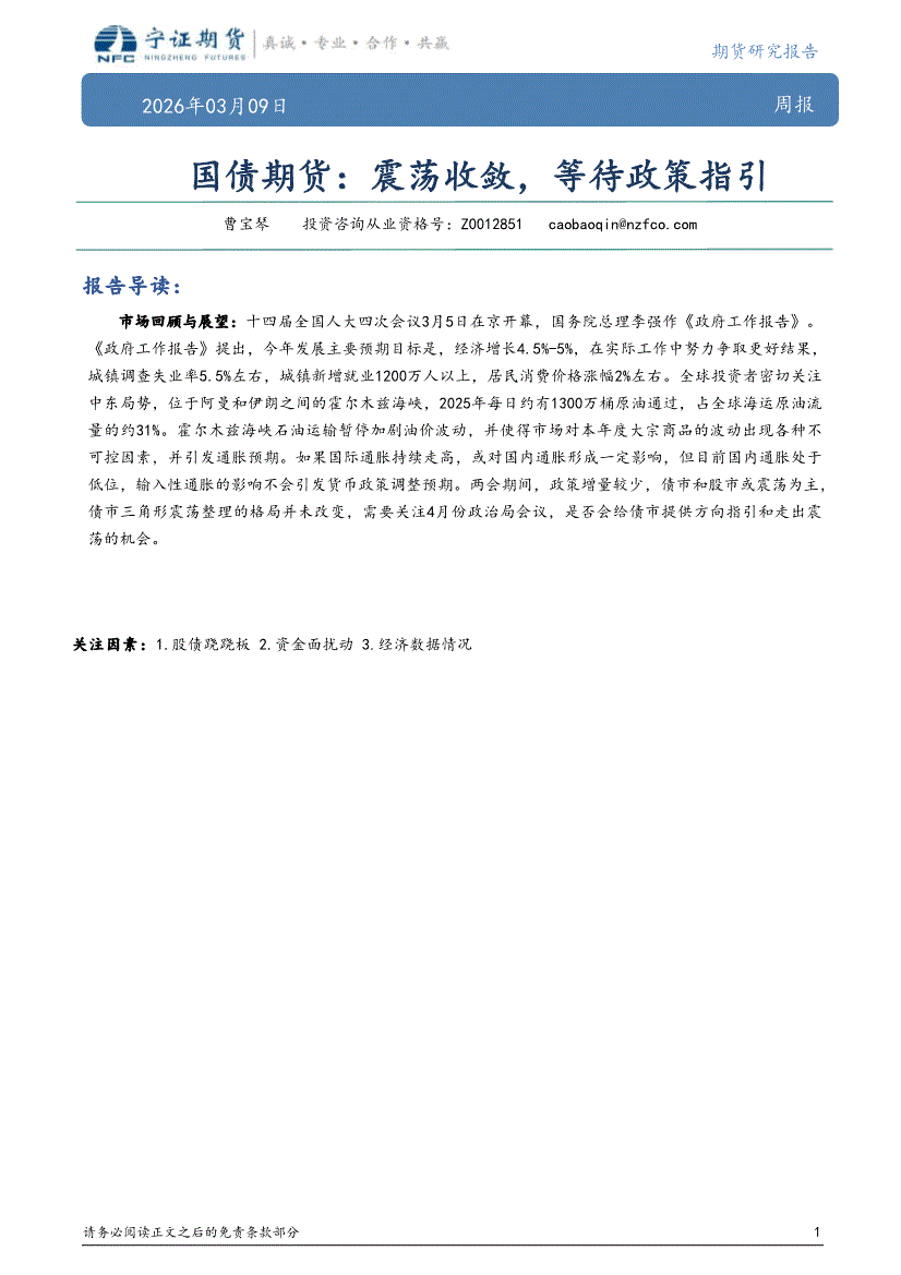 宁证期货-国债期货:震荡收敛,等待政策指引-260309