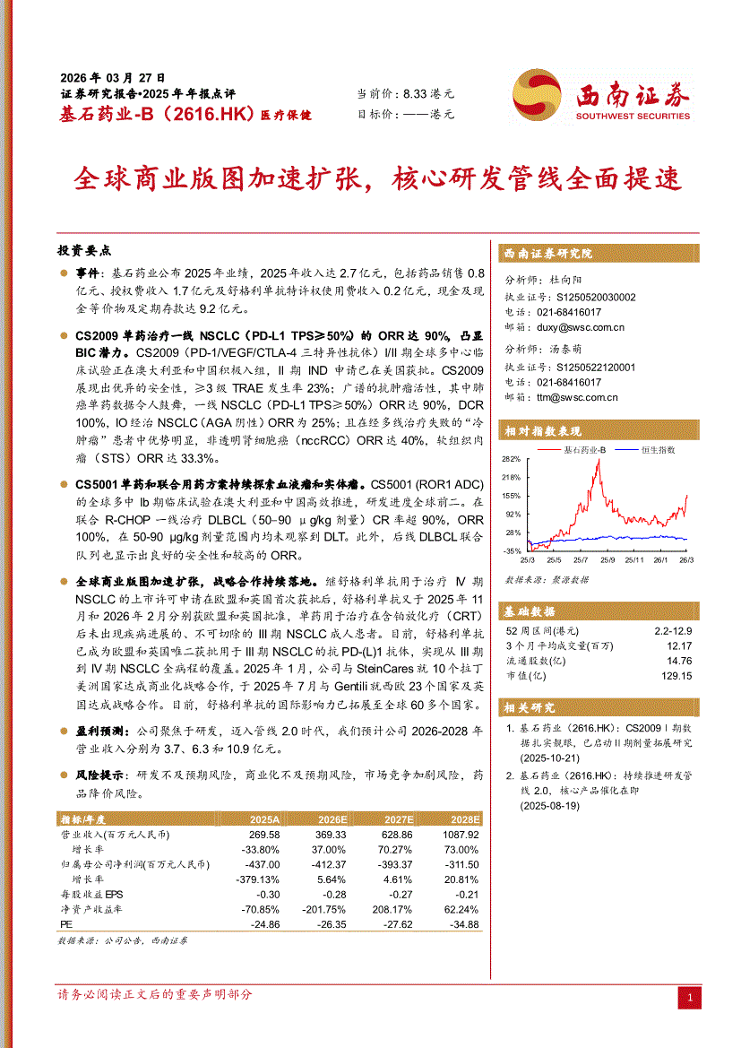 基石药业~B:西南证券-基石药业~B-2616.HK-全球商业版图加速扩张,核心研发管线全面提速-260327