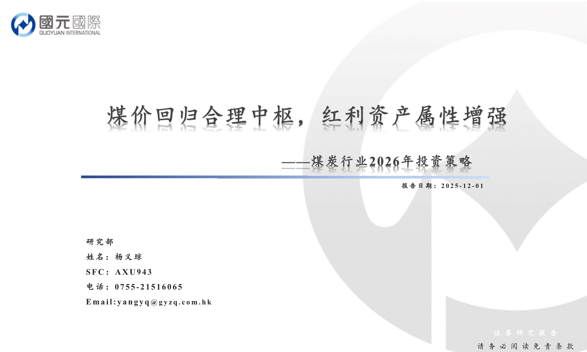 煤炭行业:国元国际-煤炭行业2026年投资策略:煤价回归合理中枢,红利资产属性增强-251201