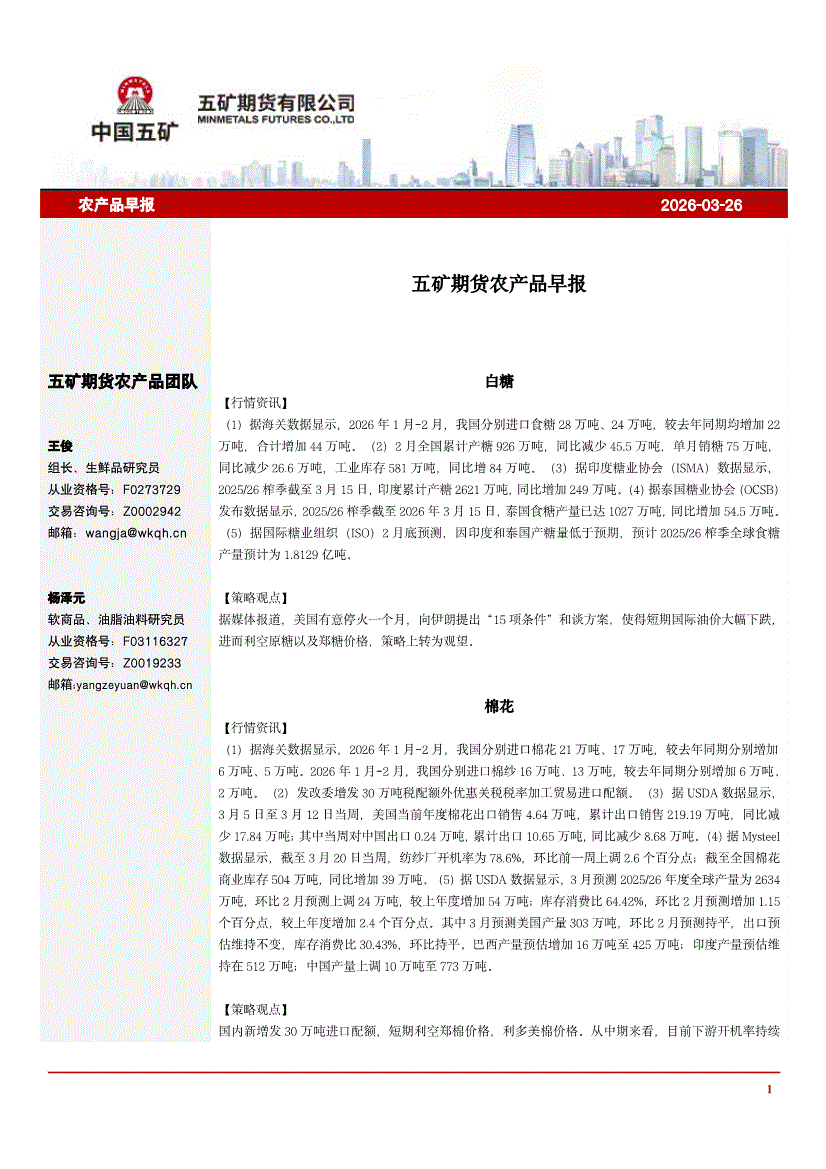 五矿期货-农产品早报-260326