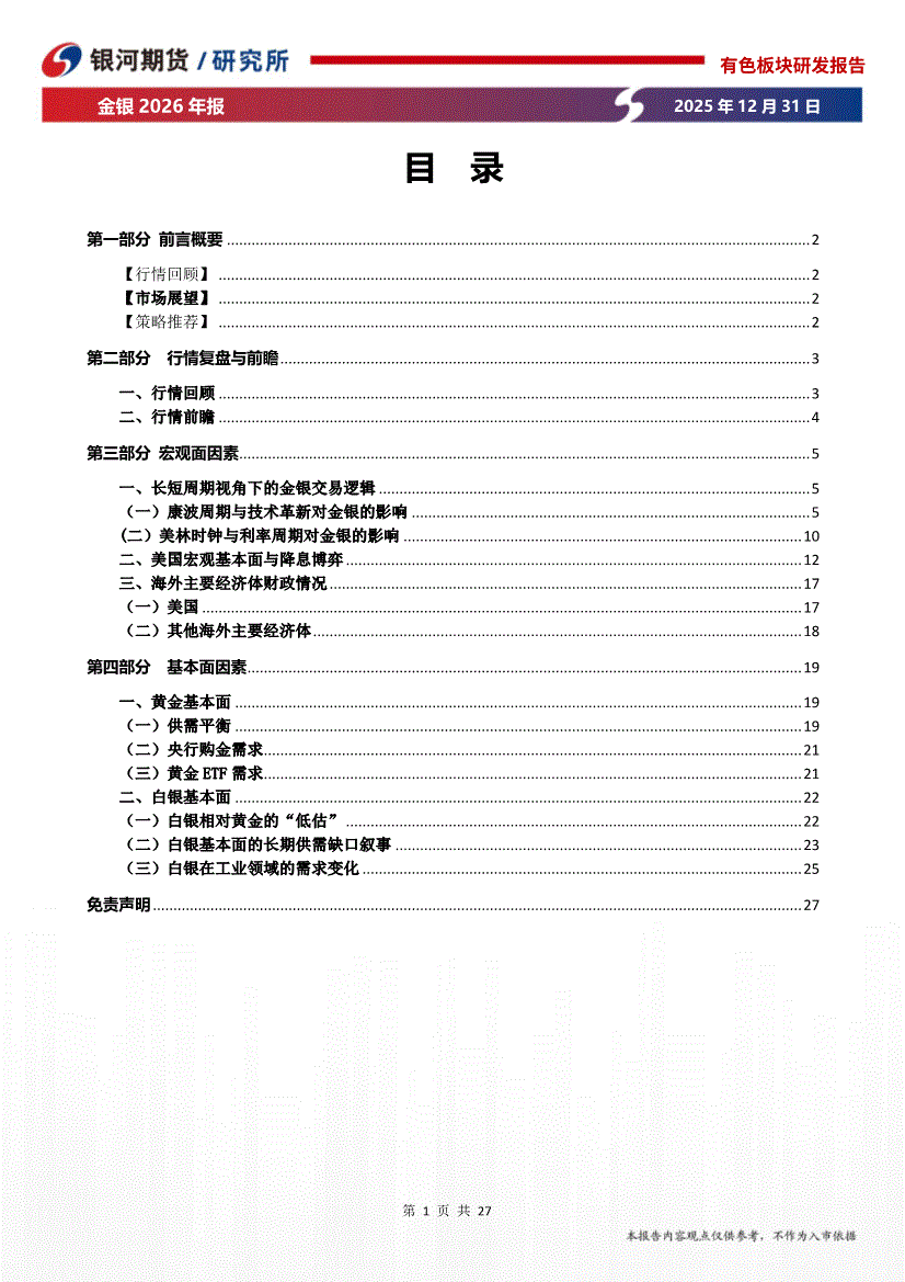 银河期货-金银2026年报:宏观与基本面共振,金银上方仍有空间-251231