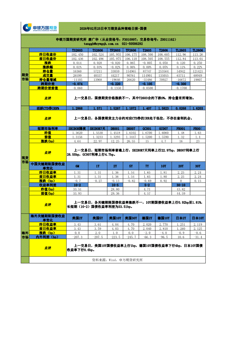 申银万国期货-品种策略日报~国债-260226