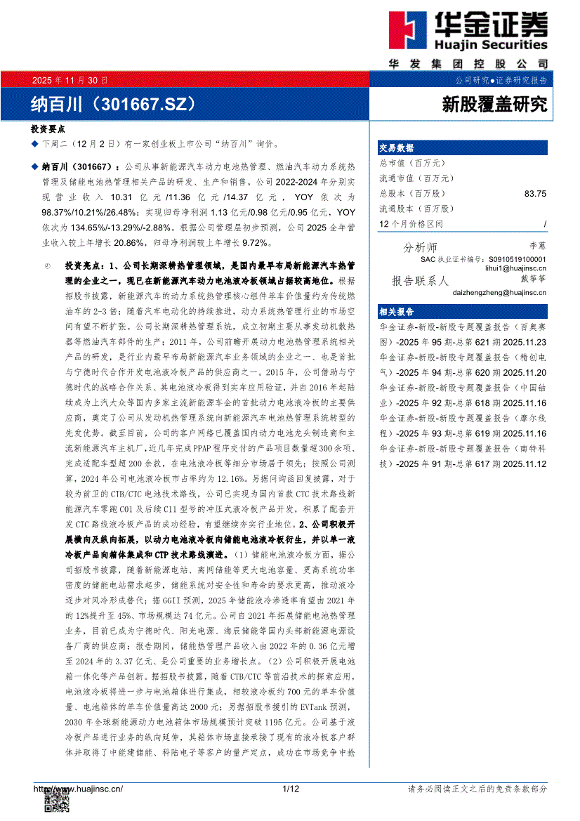 纳百川:华金证券-纳百川-301667-新股覆盖研究-251130