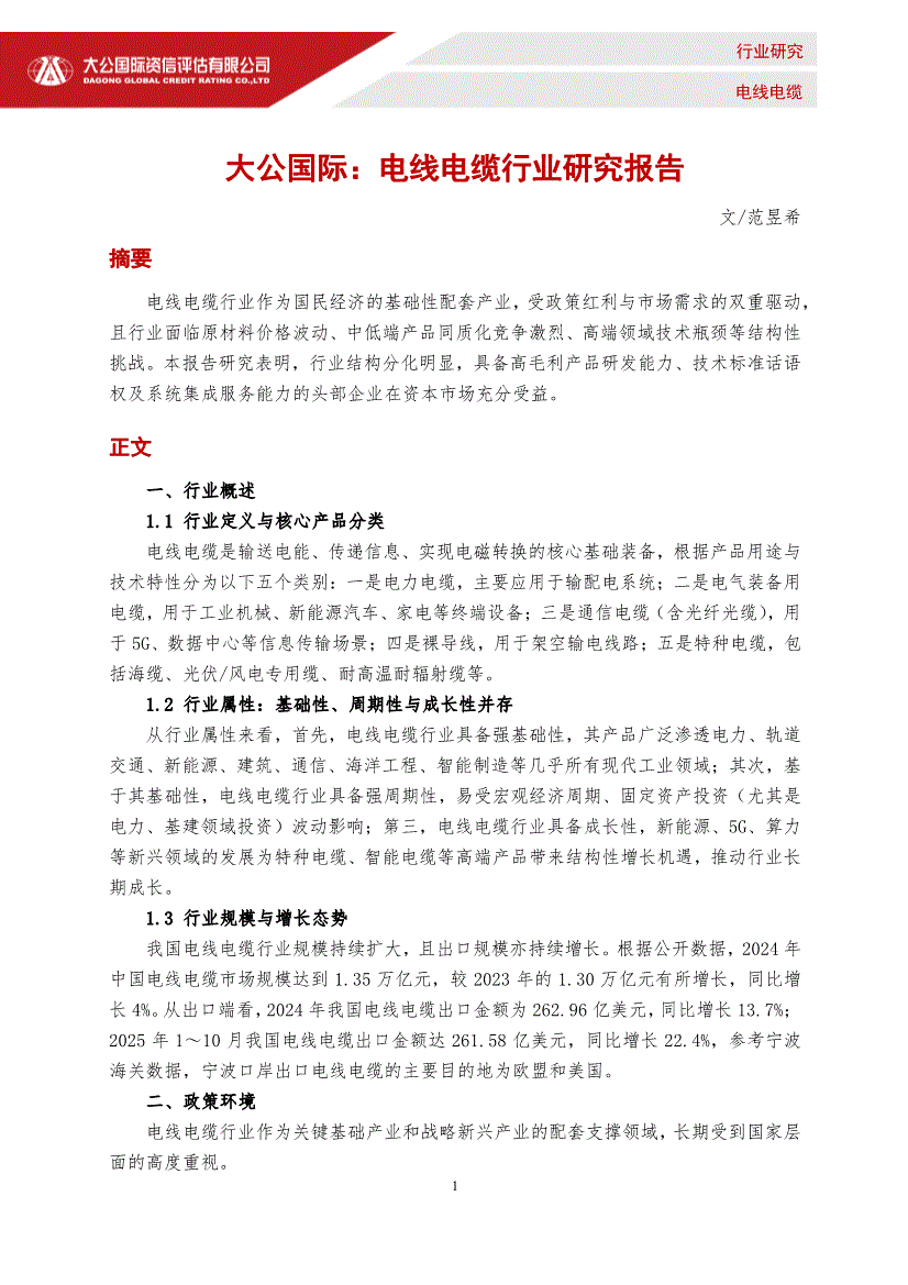 电线电缆行业:大公国际-电线电缆行业研究报告-251224