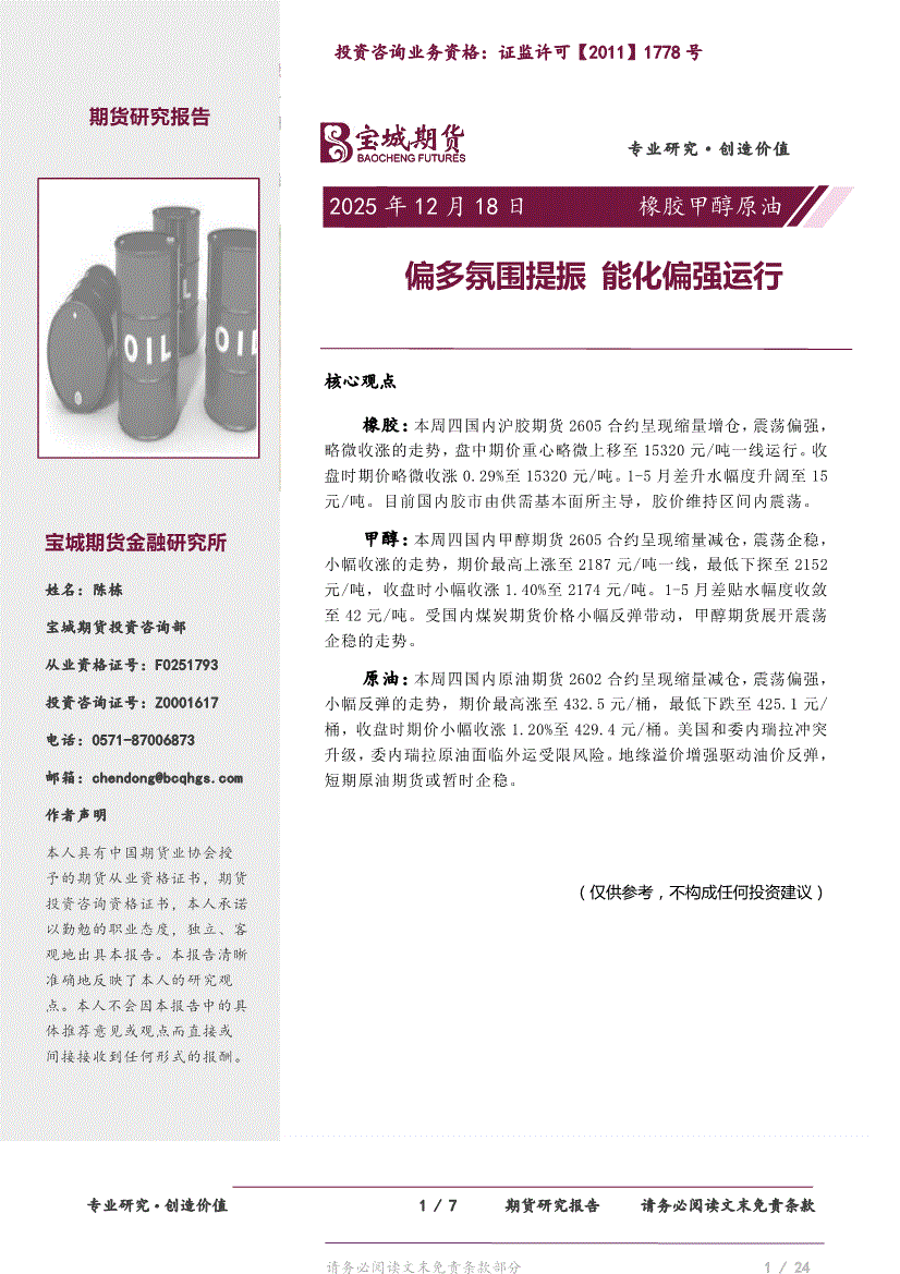 宝城期货-橡胶甲醇原油日报:偏多氛围支撑,能化震荡偏强-251217