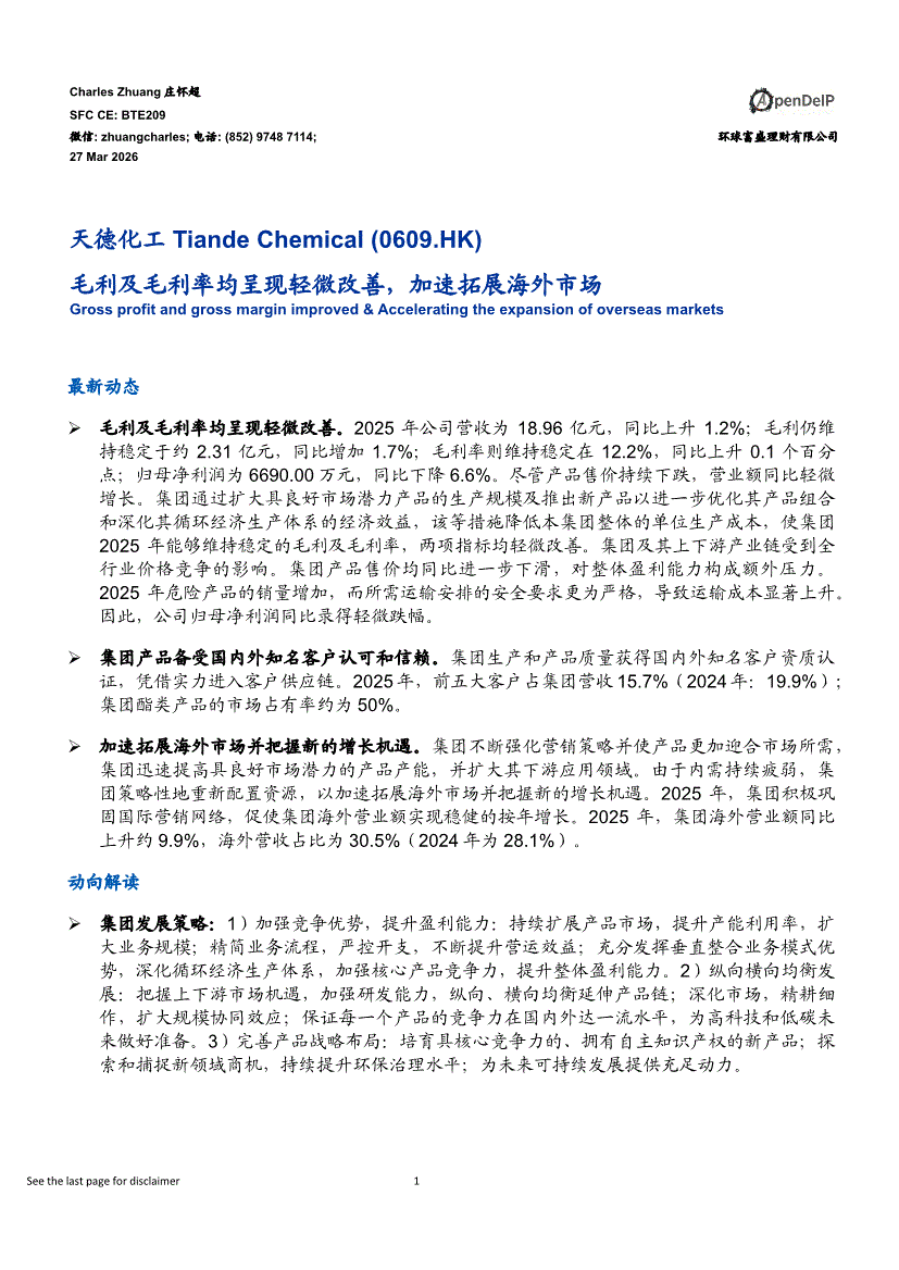 天德化工:环球富盛-天德化工-0609.HK-毛利及毛利率均呈现轻微改善,加速拓展海外市场-260327