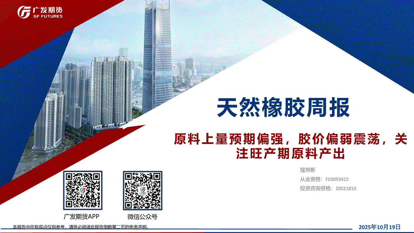 广发期货-天然橡胶周报:原料上量预期偏强,胶价偏弱震荡,关注旺产期原料产出-251019