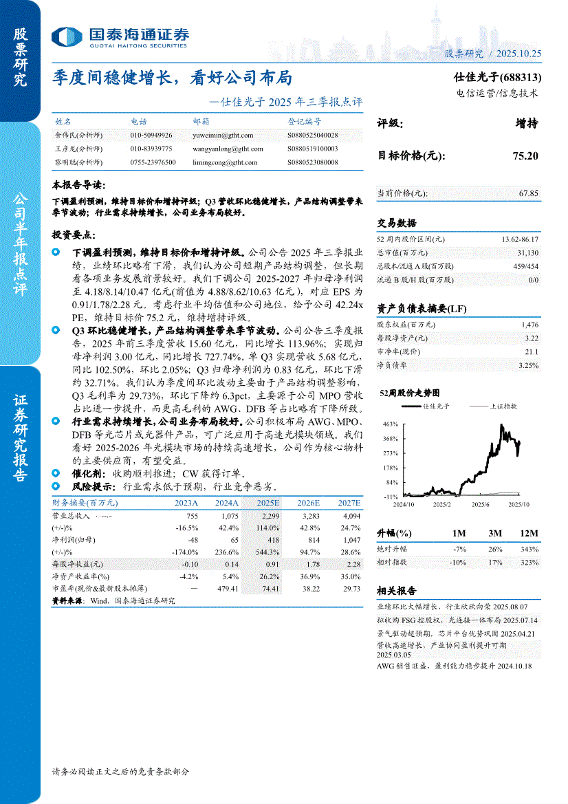 仕佳光子:国泰海通证券-仕佳光子-688313-2025年三季报点评:季度间稳健增长,看好公司布局-251025