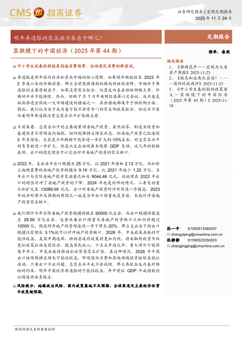 招商证券-显微镜下的中国经济(2025年第44期):明年再通胀的需求动力来自于哪儿?-251124