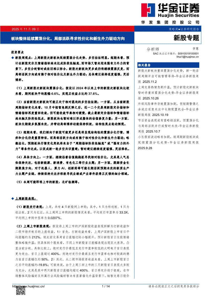 华金证券-新股专题:板块整体延续震荡分化,局部活跃寻求性价比和新生外力驱动方向-251109