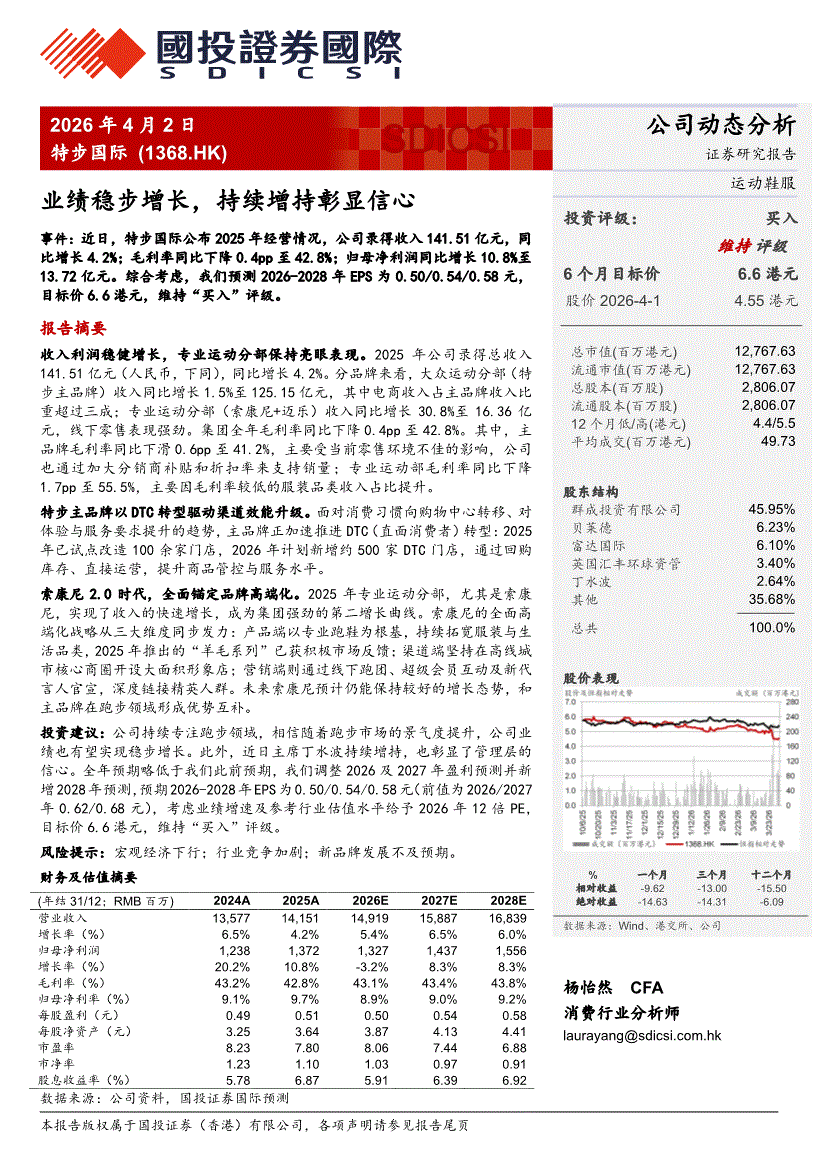 特步国际:国投证券国际-特步国际-1368.HK-业绩稳步增长,持续增持彰显信心-260402