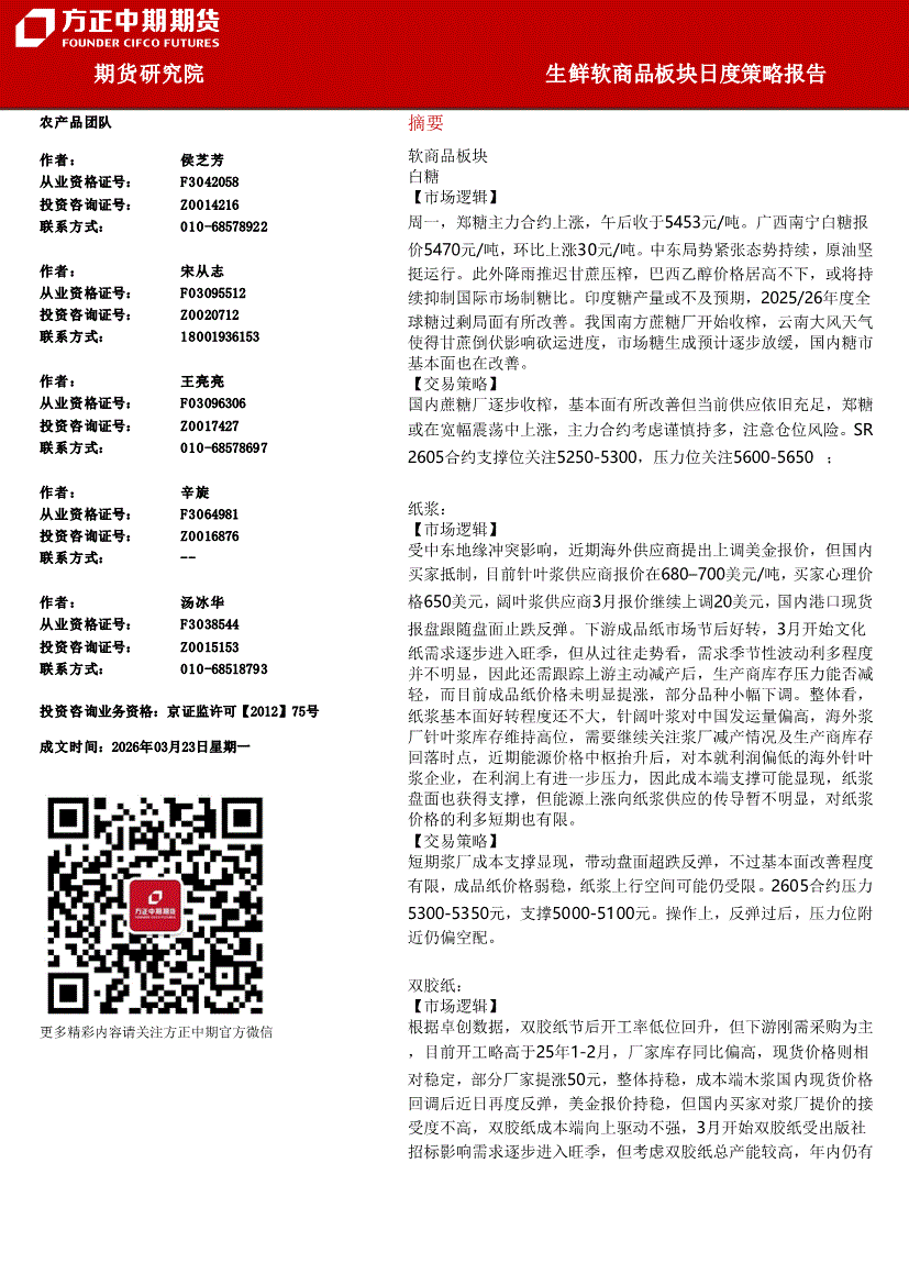 方正中期期货-生鲜软商品板块日度策略报告-260323