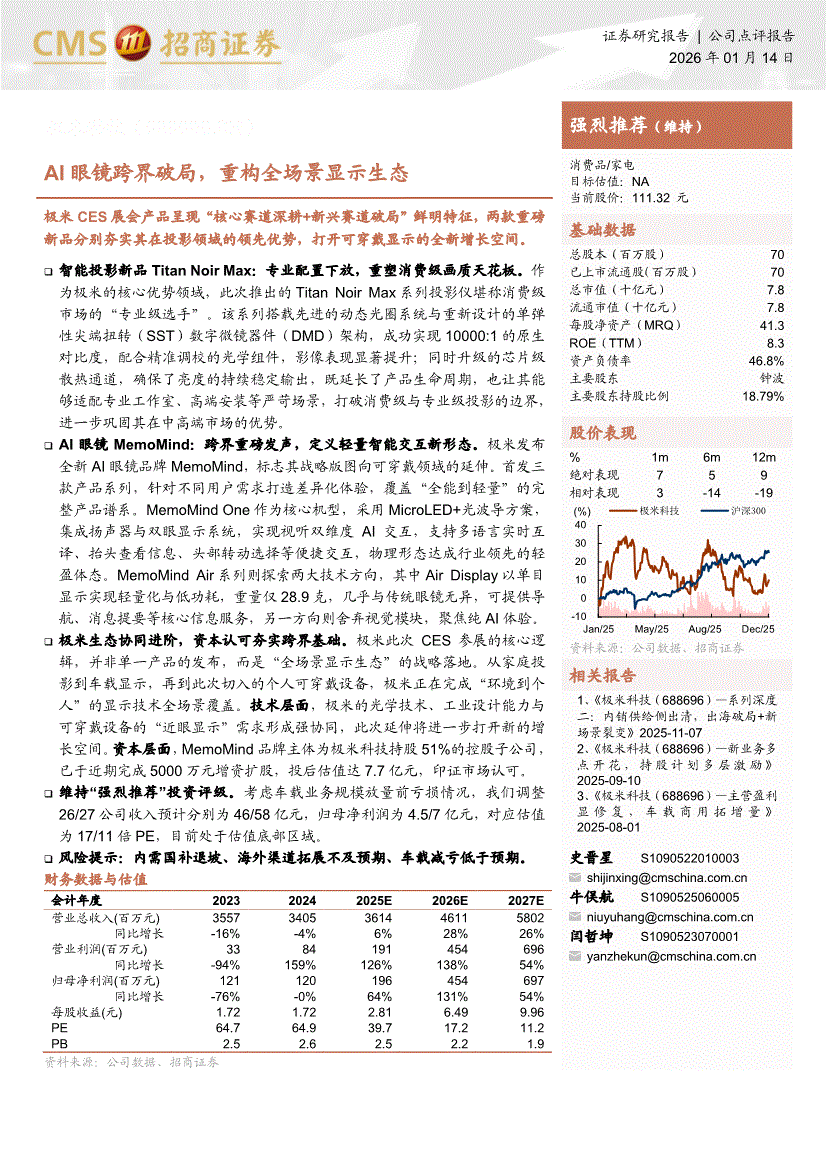 极米科技:招商证券-极米科技-688696-AI眼镜跨界破局,重构全场景显示生态-260114