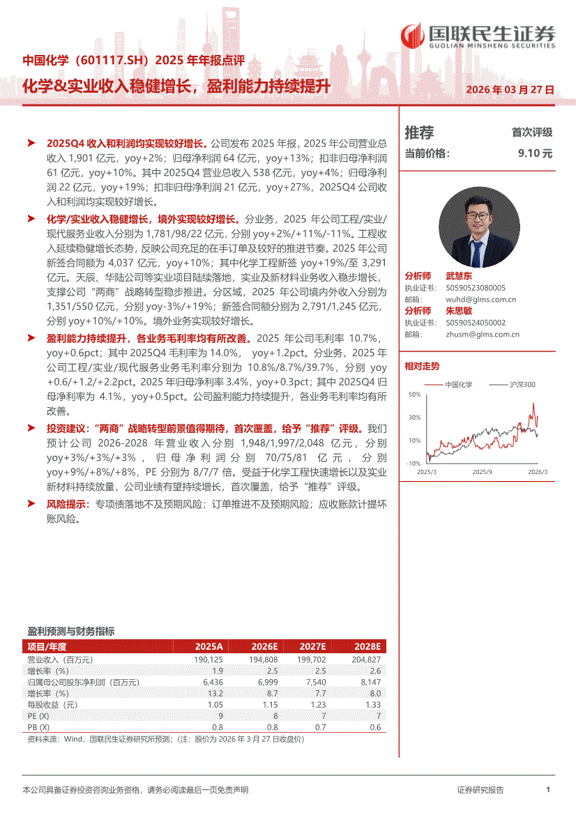 中国化学:国联民生证券-中国化学-601117-2025年年报点评:化学&实业收入稳健增长,盈利能力持续提升-260327