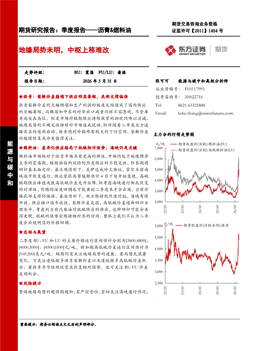 东证期货-沥青&燃料油季度报告:地缘局势未明,中枢上移难改-260331